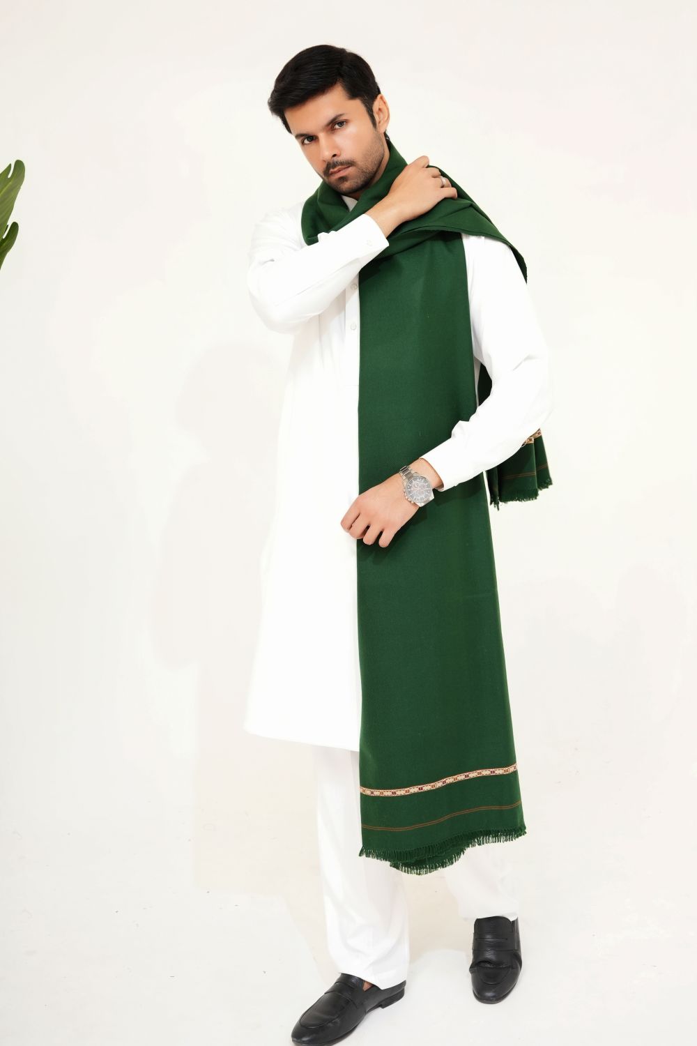 Wrap yourself in Refined Winter Comfort with the Arshad Mens Wear Green Woolen Shawl. Crafted from Extra Fine Wool, this Shawl delivers Exceptional Softness, Warmth, and Breathability. The Rich Green shade adds a Bold yet Elegant Touch, perfect for Winter Weddings, Formal gatherings, Eid Nights, or stylish everyday layering. Lightweight, Cozy, and Beautifully draped, it enhances any Outfit with effortless Sophistication. A must-have Accessory for men who value Premium Quality and Timeless Style.