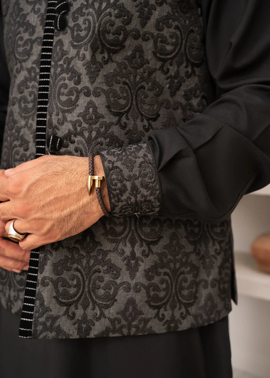 Black Kameez Shalwar with Embroidered Waist Coat