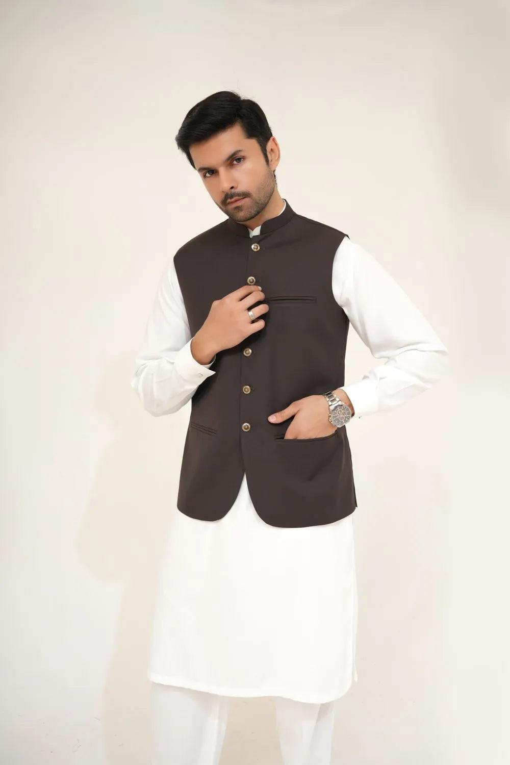 Elevate your Formal Style with the Arshad Mens Wear Classic Heritage Brown Waistcoat. Crafted from Premium Suiting Fabric, this waistcoat ensures a Perfect Fit, Comfort, and a Sharp, Polished Appearance. The rich Brown Tone exudes Timeless Elegance, making it ideal for Weddings, Corporate Events, Formal Gatherings, or special occasions. Lightweight, durable, and versatile, it blends Classic Heritage Style with modern Sophistication. Upgrade Your Wardrobe, add this Stylish Brown Waistcoat to your cart today and make every occasion memorable with Confidence and Charm!