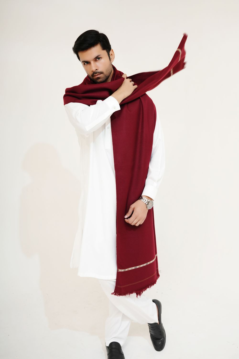 Stay Warm in Style with the Arshad Mens Wear Maroon Woolen Shawl. Crafted from Extra Fine Wool, this Shawl offers Exceptional Softness, Warmth, and Breathability. The Rich Maroon shade exudes Timeless Elegance, making it perfect for Winter Weddings, Formal Gatherings, Eid nights, or Sophisticated everyday Layering. Lightweight yet Cozy, it drapes Beautifully over any Outfit, enhancing your look with Effortless Charm. A must-have Accessory for men who value Comfort and Refined style.